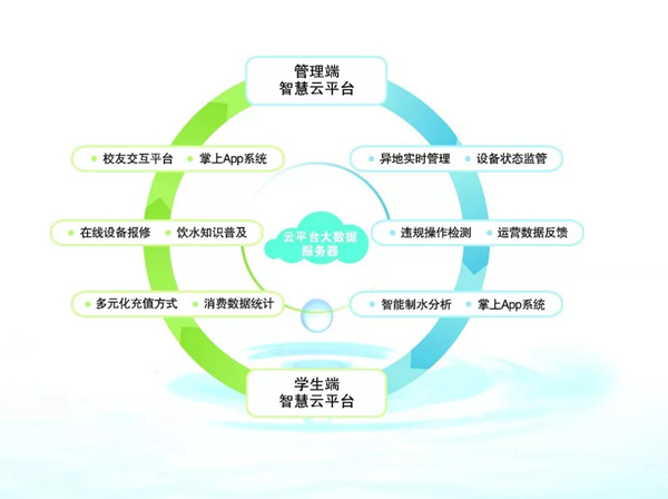 此外,榮事達(dá)著眼校園直飲水的互聯(lián)網(wǎng)化建設(shè),依托先進(jìn)的云端大數(shù)據(jù)平臺(tái)、無(wú)線(xiàn)網(wǎng)絡(luò)體系和智能一卡通技術(shù)等,創(chuàng)新打造ultraWiFi智慧管理系統(tǒng),系統(tǒng)直連ultraWiFi凈水主機(jī)、開(kāi)水器、飲水機(jī)等終端定制設(shè)備,實(shí)現(xiàn)精細(xì)化管理。學(xué)生在使用中不僅能查詢(xún)飲水消費(fèi)記錄、在線(xiàn)報(bào)修設(shè)備、與校友交流等,還能擁有多元化充值方式選擇,充分享受快捷的智能化飲水體驗(yàn)。 同時(shí)設(shè)備運(yùn)營(yíng)商也可通過(guò)電腦或手機(jī)APP端口接入云數(shù)據(jù)平臺(tái),異地監(jiān)測(cè)工程運(yùn)行狀況,實(shí)時(shí)掌握水電成本、消費(fèi)收益、設(shè)備狀態(tài)等數(shù)據(jù)信息,日常管理更簡(jiǎn)單。
