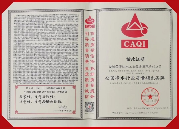 在中國質量檢驗協會主辦的2023年“3.15”產品和服務質量誠信承諾的主題活動中,榮事達憑借過硬的實力,獲得協會以及權威專家的一致認可,榮膺“全國凈水行業(yè)質量領先品牌”“全國產品和服務質量誠信示范企業(yè)”“全國質量檢驗穩(wěn)定合格產品”“全國消費者質量信譽保障產品”多項榮譽。