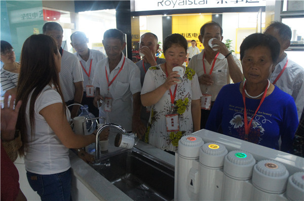 參觀中,安徽望江地區(qū)的李先生詢(xún)問(wèn)有沒(méi)有能過(guò)濾井水的產(chǎn)品,“我們家里沒(méi)通自來(lái)水,這些天連續(xù)大雨,家里井水犯渾,根本沒(méi)辦法喝。”工作人員向其推薦了專(zhuān)門(mén)為農(nóng)村地區(qū)研發(fā)的自吸式純水機(jī),產(chǎn)品能有效克服水壓不足、不穩(wěn)問(wèn)題,采用先進(jìn)的反滲透技術(shù)和五級(jí)過(guò)濾系統(tǒng),能夠高效濾除水中雜質(zhì),去除水垢、水堿、農(nóng)藥、化肥、細(xì)菌、重金屬等有害物質(zhì)。在展廳,消費(fèi)者切身感受了產(chǎn)品使用效果,在飲用機(jī)器現(xiàn)制的水之后,紛紛稱(chēng)贊產(chǎn)品功能強(qiáng)。