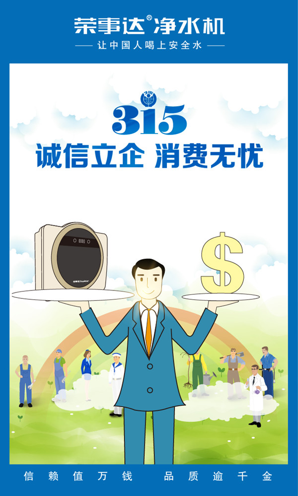榮事達(dá)肩負(fù)保障飲水安全的使命,將大企業(yè)大品牌的責(zé)任心落在實(shí)處,以誠(chéng)信立企,以誠(chéng)信塑品牌,在推動(dòng)創(chuàng)造誠(chéng)實(shí)守信、公平有序的市場(chǎng)環(huán)境之中,成就企業(yè)價(jià)值!