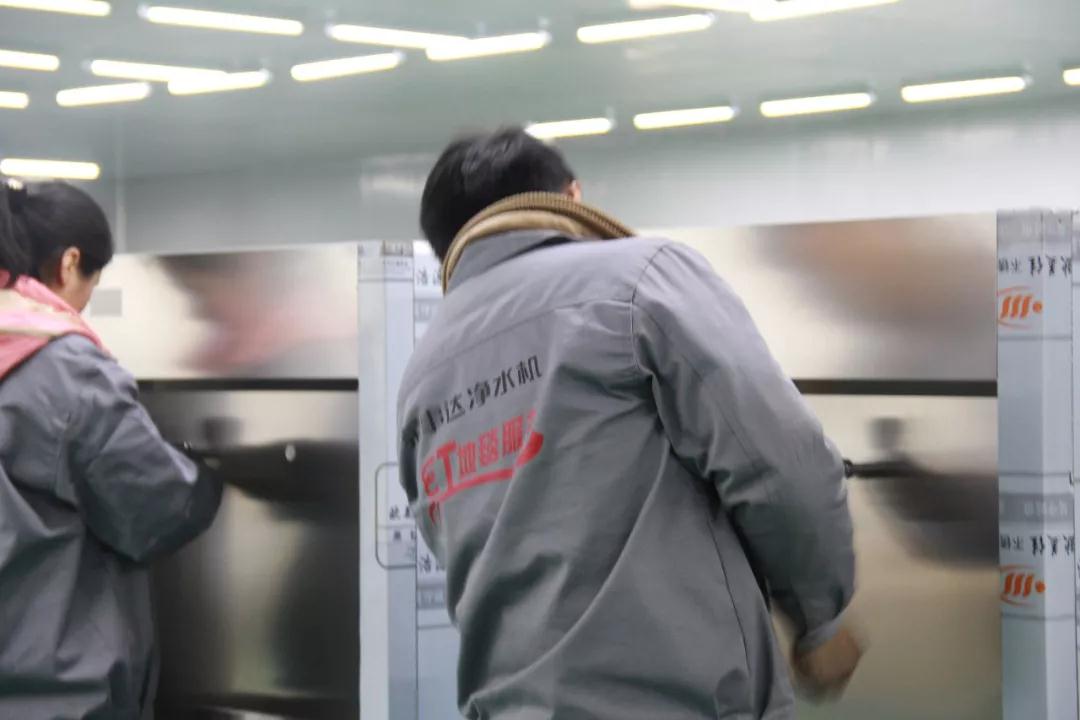 凈水機生產區域一派熱火朝天的景象。春節過后,工人們就迅速投入到緊張忙碌的工作之中,瞄準2018新目標,全力以赴。負責人表示,3月首周的訂貨量非常大,廠區剛開工就進入高產能生產,而員工們也精神飽滿斗志昂揚,盯緊發貨量的同時不忘提檔升級。