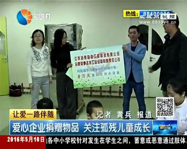 2016年,榮事達水工業公司走進紅色革命老區——金寨縣,攜手金寨希望公益服務中心及地方公益協會共同發起“‘給山區孩子一杯水’——援建金寨縣中小學凈水設備公益項目”,為金寨縣所有中小學援建直飲水系統400多套,全面呵護學生飲水健康。該項目被全國文明辦評為“全國百佳公益項目”。