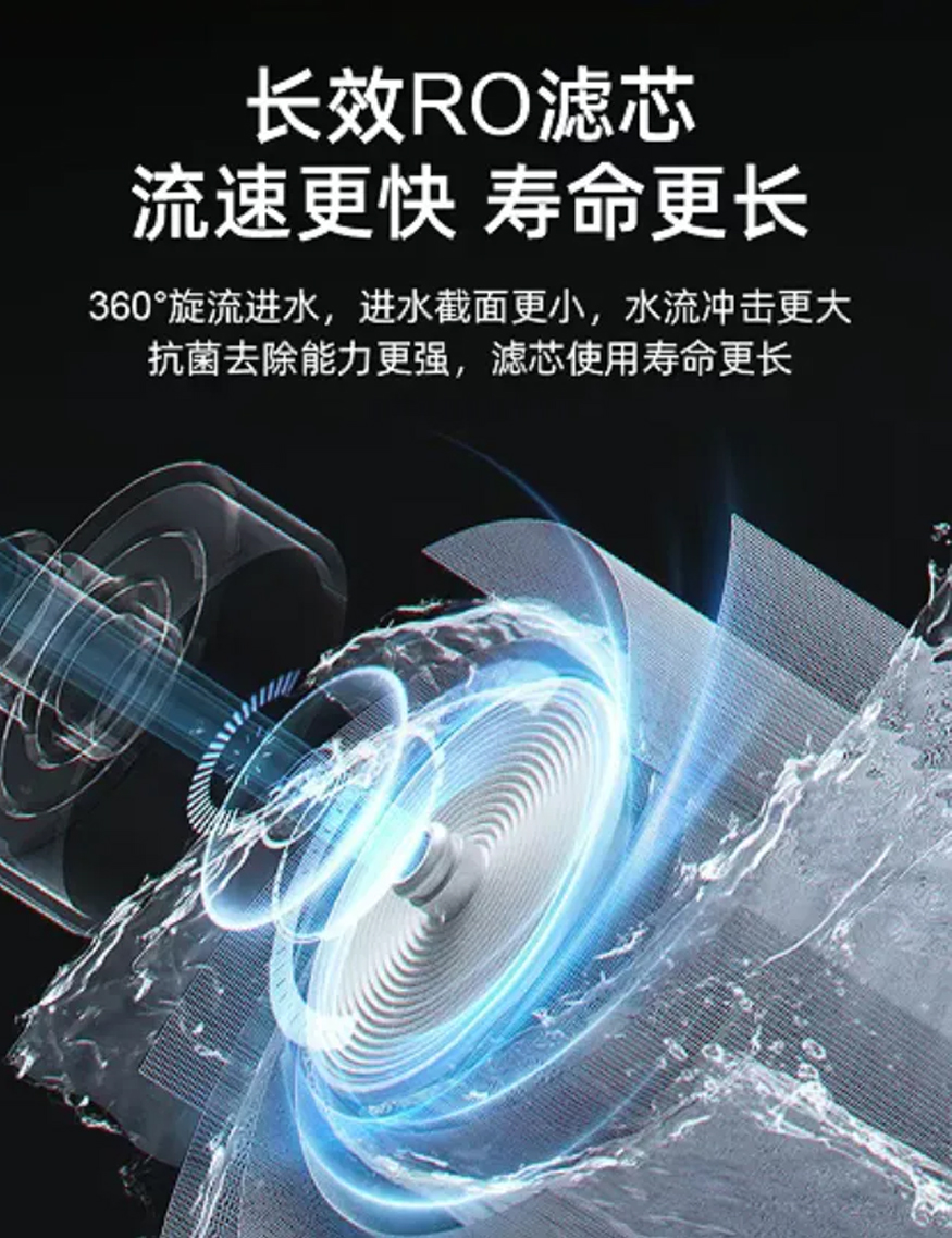 核心采用3芯5級過濾、RO反滲透技術,強力濾除重金屬、細菌等有害物質(zhì)。同時,其 360° 旋流進水設計,可實現(xiàn)更快流速,延長使用壽命,且抗菌去除能力更強。貼心升級大孔徑出水龍頭,接滿一杯僅需數(shù)秒,告別涓涓細流的漫長等待。