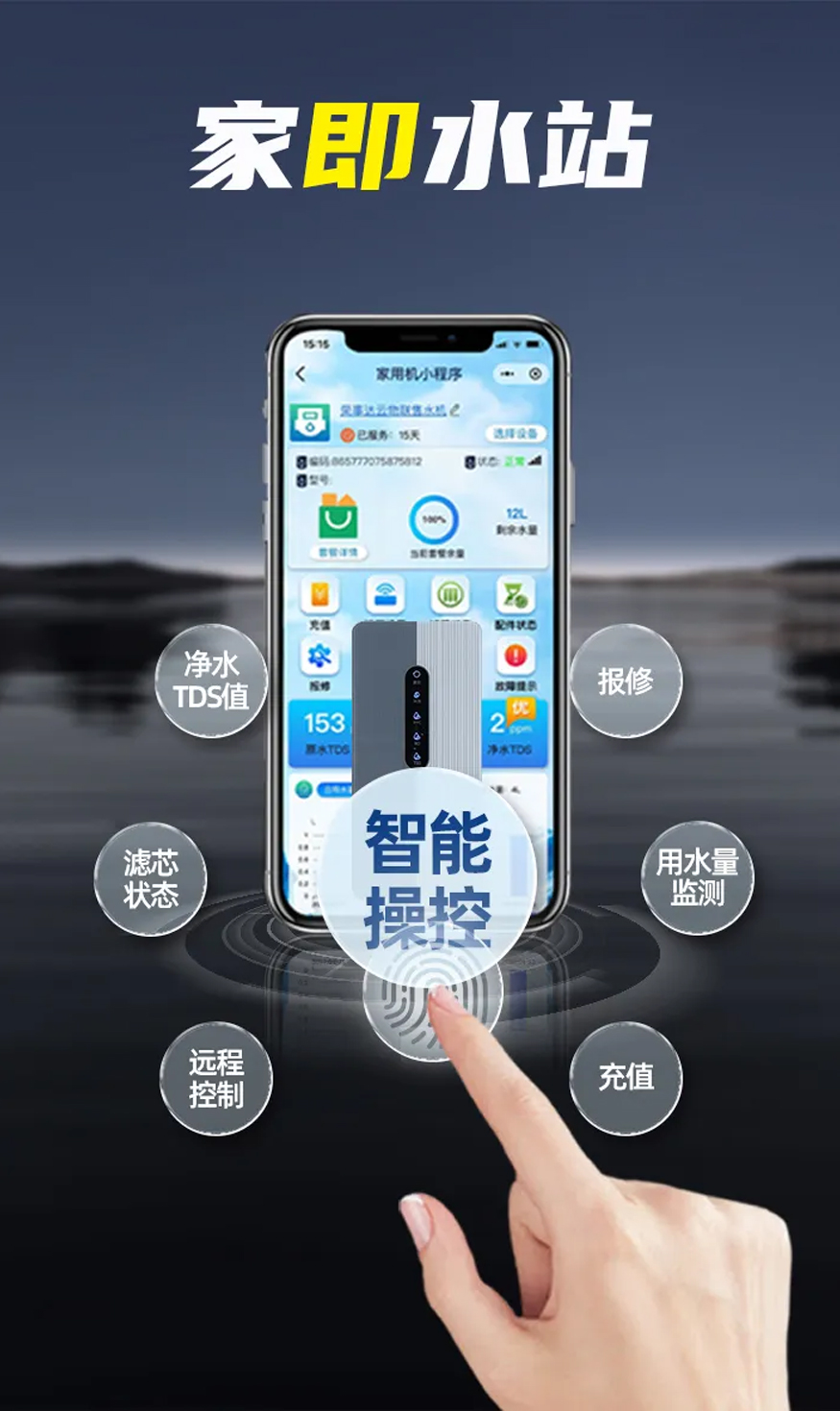 掃碼激活專屬小程序,水質(zhì)TDS值、濾芯壽命、用水量等關鍵數(shù)據(jù)實時躍然屏上。用戶抬眼即見安心,用水盡在掌握。