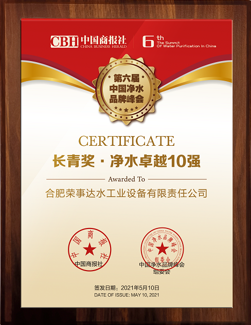 【號外】熱烈祝賀榮事達(dá)榮獲2021長青獎“凈水卓越10強”、“商用凈水標(biāo)桿企業(yè)”等多項榮譽