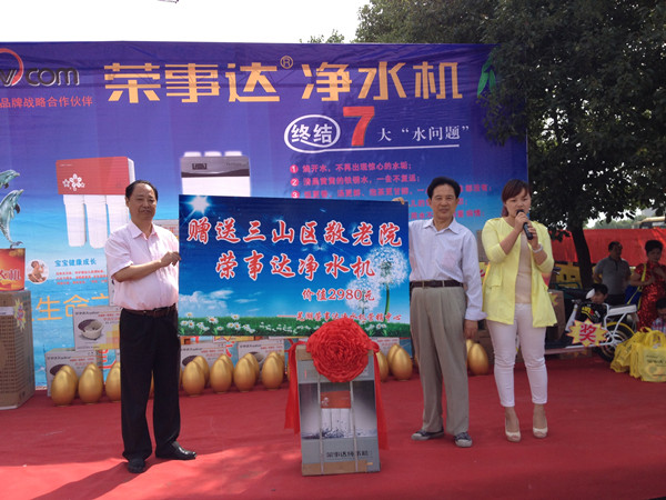榮事達(dá)水工業(yè)公司一直踐行公益,關(guān)注社會(huì)弱勢(shì)群體飲水安全,蕪湖營(yíng)銷(xiāo)管理中心自成立以來(lái),開(kāi)展了各種形式的公益活動(dòng)。7月上旬,榮事達(dá)凈水機(jī)攜手蕪湖市老年協(xié)會(huì)到三山敬老院進(jìn)行慰問(wèn)演出,為老人們奉上了精彩的歌舞表演,給他們帶去了歡樂(lè),并向該院捐贈(zèng)了凈水機(jī),讓老人們能喝上放心水。
