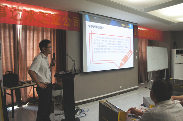 榮事達凈水機河南代理商張總在會議上分享了自己多年積累的經(jīng)驗,從剛?cè)胄袝r的銷售困惑到愈發(fā)成熟的團隊建設,再從路演、城鄉(xiāng)聯(lián)動等活動形式到墻體廣告、店面展示等推廣方式,張總用實例告訴大家凈水行業(yè)的發(fā)展?jié)摿Γ约皹s事達作為凈水行業(yè)中的知名品牌在消費者心中的信賴程度。在現(xiàn)場答疑環(huán)節(jié),工作人員對與會人員提出的產(chǎn)品和售后服務等問題進行一一解答,消除了大家對凈水品牌和產(chǎn)品的疑慮。