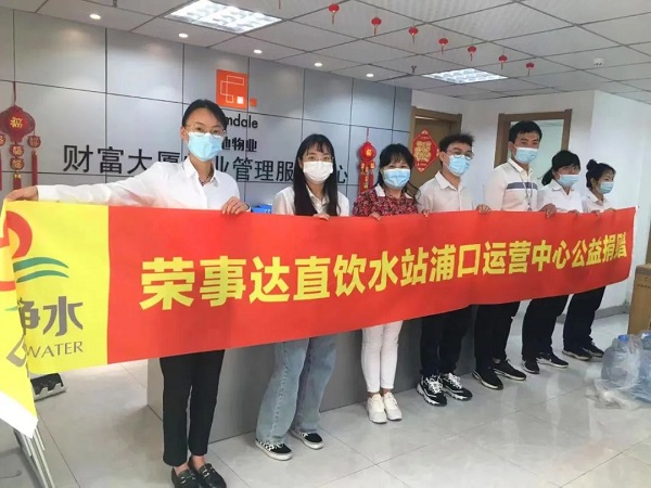 5月31日,榮事達(dá)直飲水站南京經(jīng)銷商王新玲向上海金地物業(yè)有限公司南京分公司捐贈(zèng)價(jià)值萬余元的物資——榮事達(dá)直飲水水卡和榮事達(dá)飲水機(jī),保障全體物業(yè)工作人員在疫情防控期間也能喝上安全健康好水。