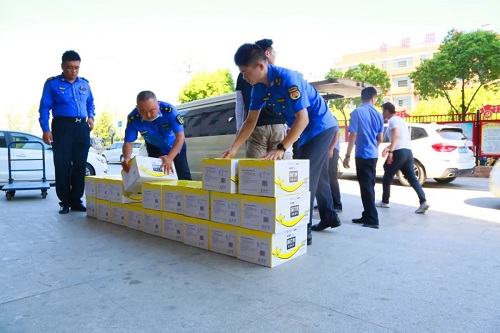 8月12日上午,榮事達(dá)水工業(yè)集團(tuán)為雙鳳城市管理行政執(zhí)法中隊(duì)送去一批蘇打水,向堅(jiān)守在城市管理一線的工作者們表達(dá)敬意。